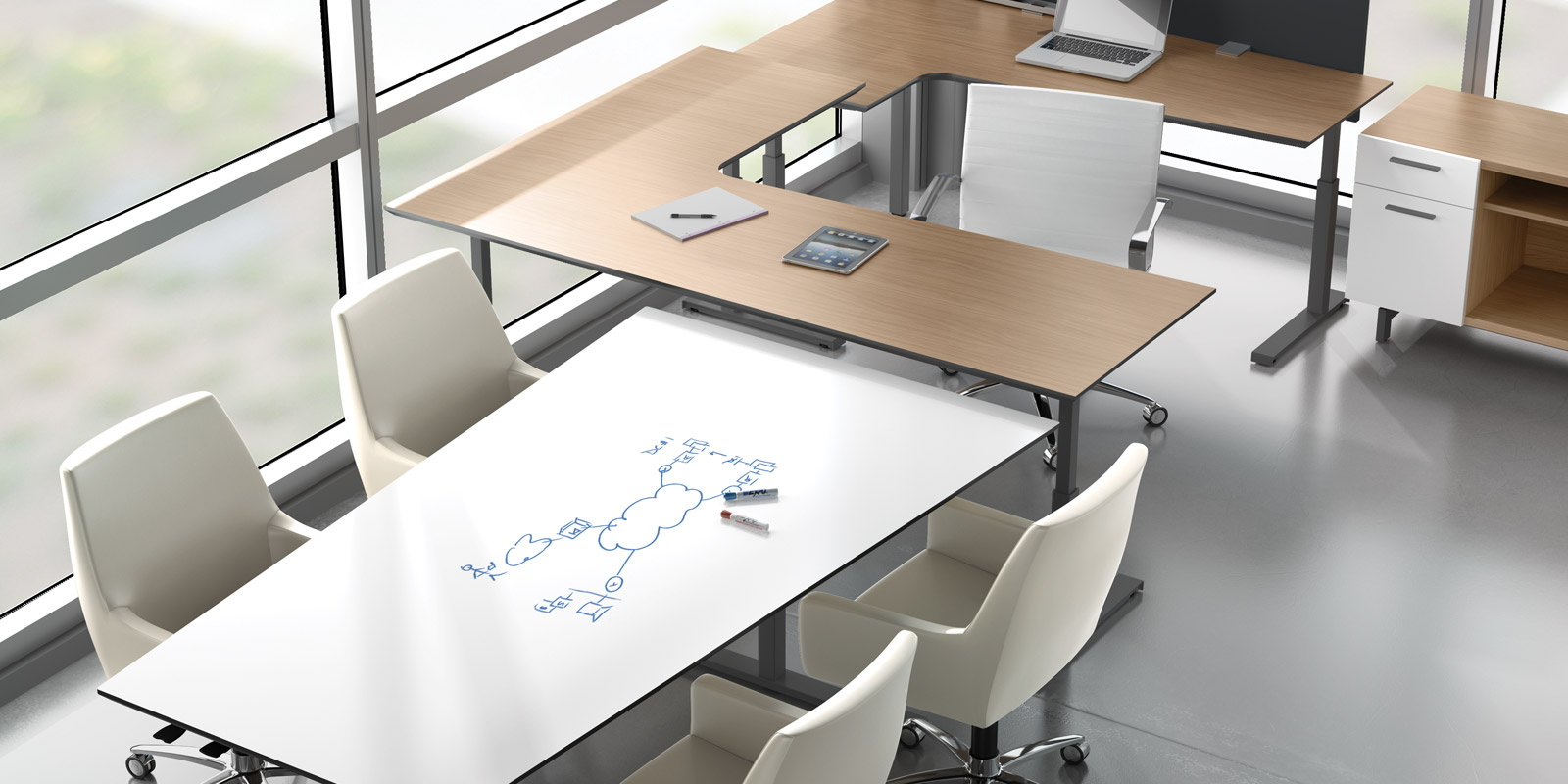 Watson L shaped wood top desks